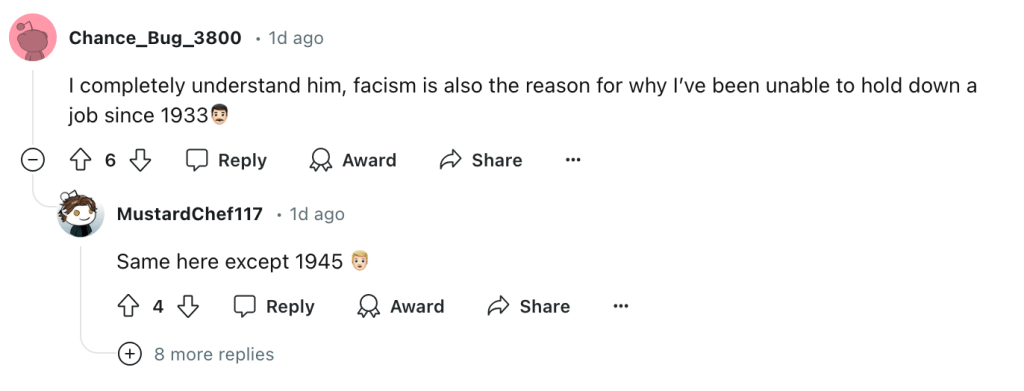 But it has never crossed my mind that there was an excuse far greater than all of these. One we can break open at a moments notice whenever a friend or family member asks us why we aren’t farther along in this amazing story we’ve told them we’re working on. There is, in fact, fascism.