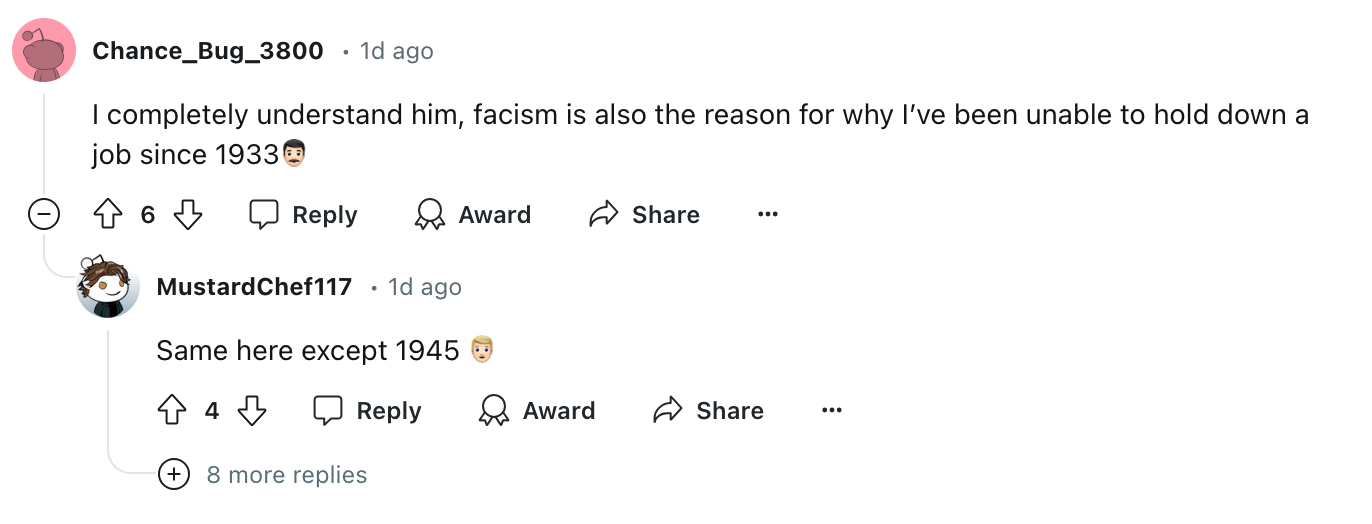 But it has never crossed my mind that there was an excuse far greater than all of these. One we can break open at a moments notice whenever a friend or family member asks us why we aren’t farther along in this amazing story we’ve told them we’re working on. There is, in fact, fascism.